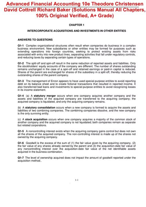 Download Ebook Advanced Financial Accounting 10th Edition Christensen Solutions Free Download PDF